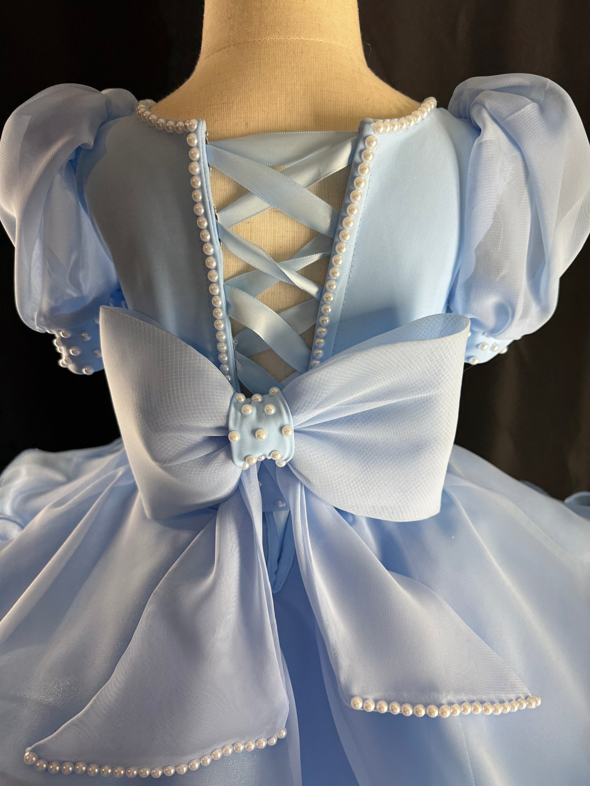 This brand new baby blue Luna is absolutely gorgeous with lots of pearls, belt is removeable