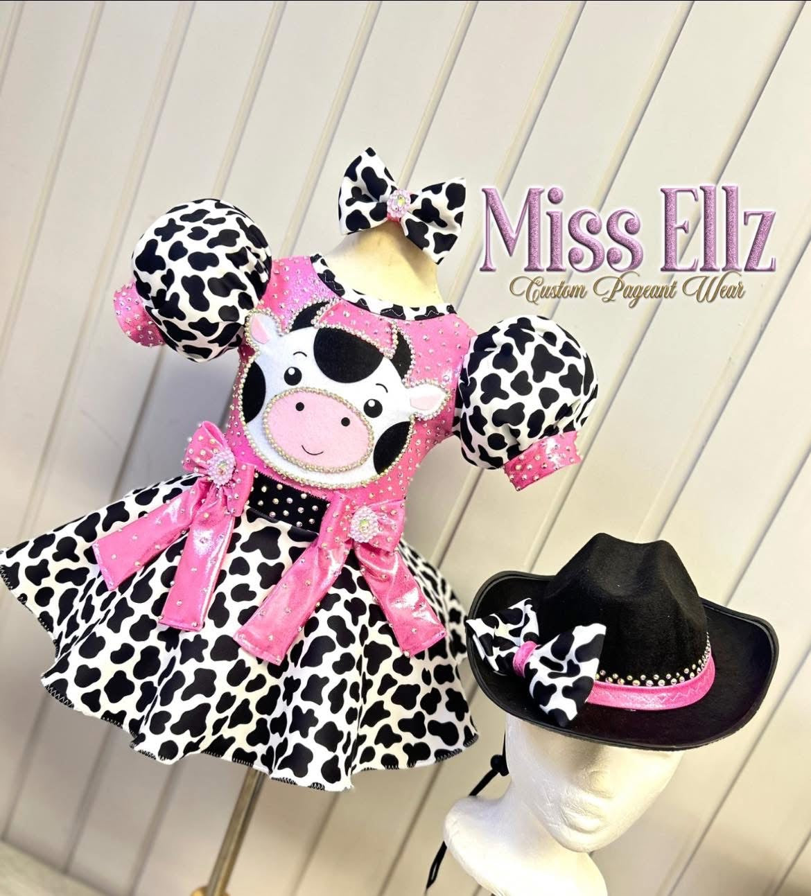 This piece comes with the gorgeous western cowgirl hat, dress which can double as a full length or peplum style for older/taller size, shorts, hair bow and bustle bow